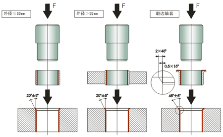 3. 裝配時(shí)應(yīng)采用芯軸慢慢壓入(建議使用油壓機(jī)),禁止直接敲打軸套以免發(fā)生變形。